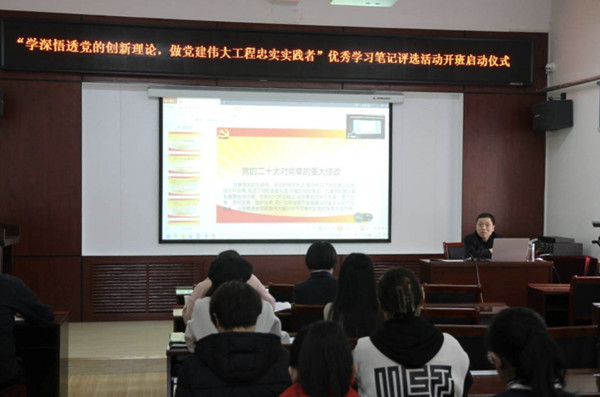 “党的二十大为何要修订党章”“50处修改之处为什么要作现在这样的修改”“第一部《中国共产党章程》是党的几大制定的”“党的几大通过的党章是唯一在国外修订的党章”43两点半公司党委副书记、纪委书记、工会主席李怀生边讲课边提问,正给公司党群各部门所有人员、分公司党群办主任讲授以党的二十大对党章的重大修改”为主题的学习宣传贯彻党的二十大精神专题