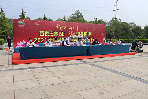 4月23日上午,三分公司河北中烟钻石(荷花)品牌专线项目与石家庄卷烟厂联合举办火灾应急预案演练,双方近100名职工参加演练,石家庄卷烟厂副总经理胡良彬、三分公司经理李书伟出席并致辞,藁城区消防救援大队应邀协助演练。